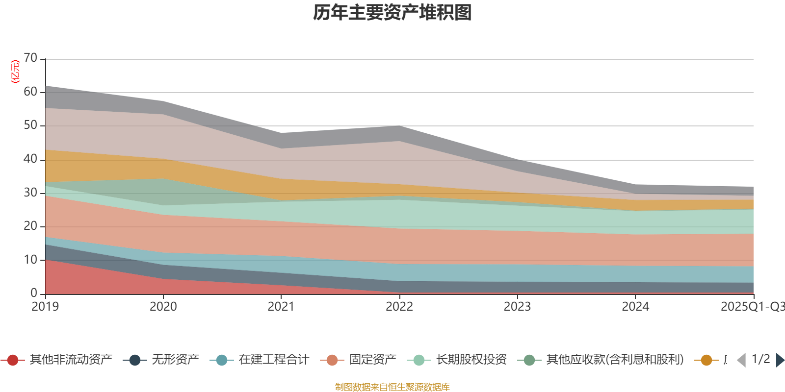 资产重大变化方面,截至2025年三季度末,公司货币资金较上年末减少38.52%,占公司总资产比重下降2.12个百分点;固定资产较上年末增加4%,占公司总资产比重上升1.79个百分点;长期股权投资较上年末增加4.11%,占公司总资产比重上升1.35个百分点;应收票据及应收账款较上年末减少14.57%,占公司总资产比重下降1.24个百分点。