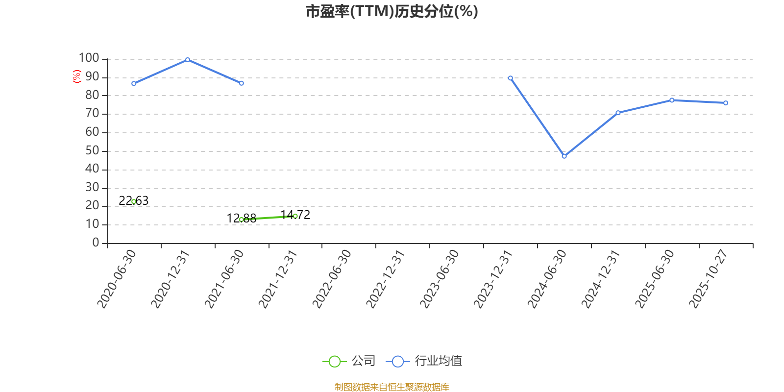 市盈率、市净率为负时,不显示当期分位数,会导致折线图中断。