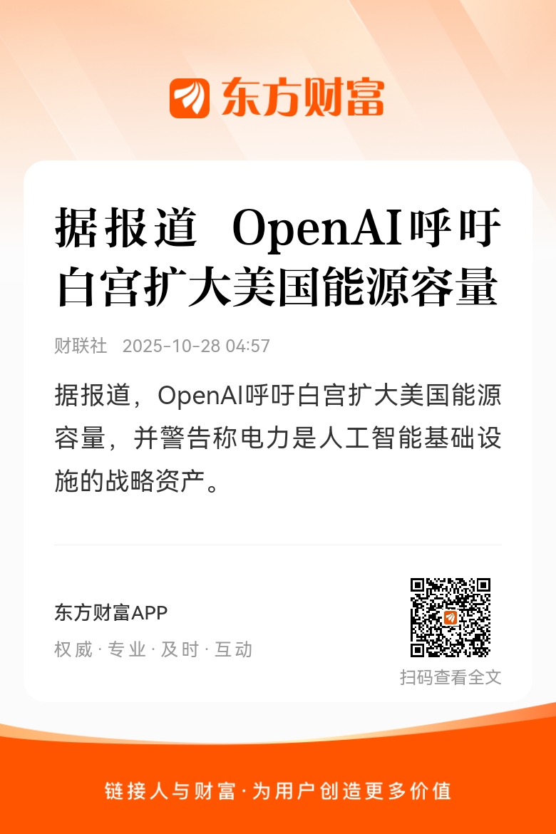 据报道,OpenAI呼吁白宫扩大美国能源容量,并警告称电力是人工智能基础设施的战略资产。