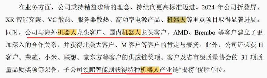 并深度切入智元机器人供应链。2023年12月,子公司东莞领杰签约合作;2024年6月签订ODM协议,提供整机代工及功能件、结构件、灵巧手、关节等核心零部件制造;今年1月批量交付灵犀X1整机,3月获得小批量订单,计划当年实现千台级量产。