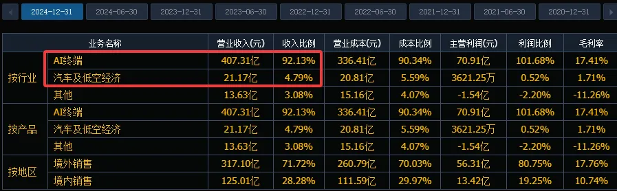 业务结构上,下游90%面向消费电子,5%面向汽车。深度绑定苹果,早在2008年就开始与苹果合作,从iPod切入苹果供应链,后面全面覆盖到手机、平板、笔记本、Airpods及混合现实产品。