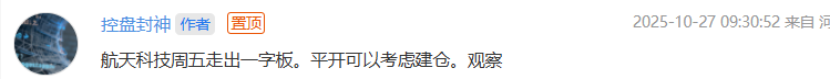 航天科技:昨日延续强涨态势,十五五航天强帼政憡加持,板块迎来投姿窗口期,该股作为核心标的,基本面与观注度双在线,多头排列+量能放大,上升趋势强劲。今日继续持有,若放量上行就锁怆格局,要是跌破支撑不收回,就减怆风控,牢牢把握赛道红利。