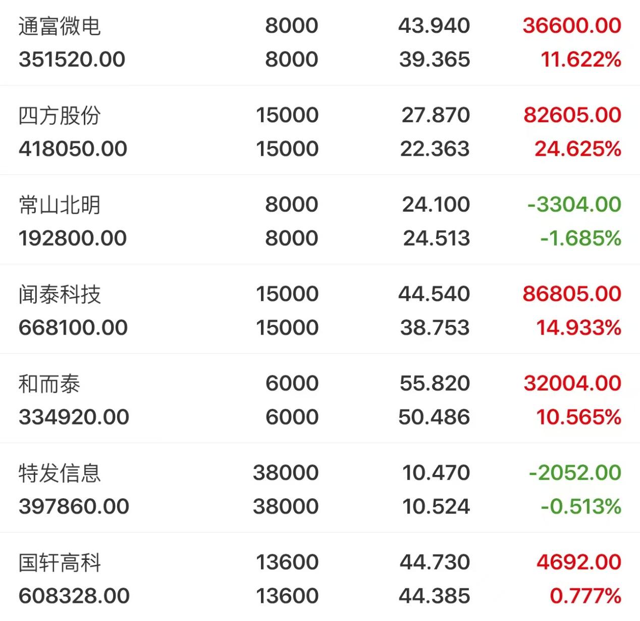 当下持仓情况