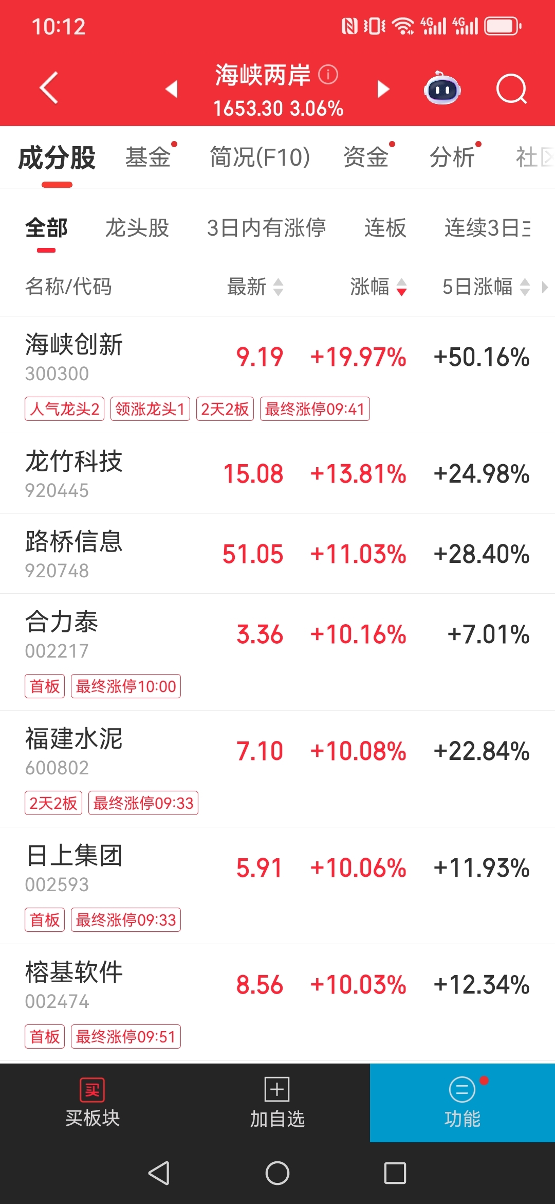 #强势机会# #炒股日记# #实盘记录# 海峡西岸概念板块目前普涨,板块中11家股票涨停板或者涨幅超过10%