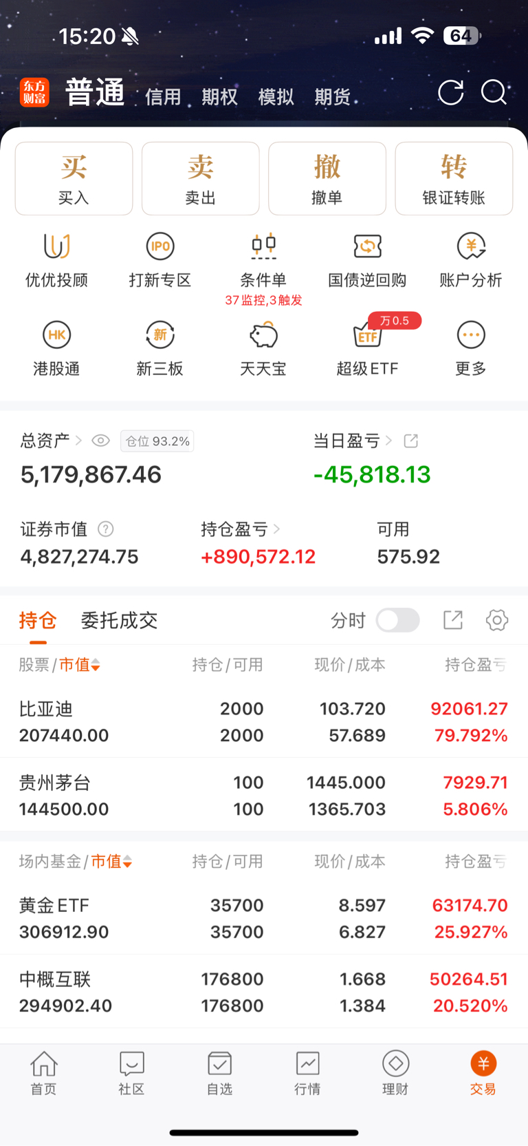 万日定投第168天,今日周定投日经ETF五千元,触发条件单3笔,买入1笔,卖出2笔,今日收益: —4.5w