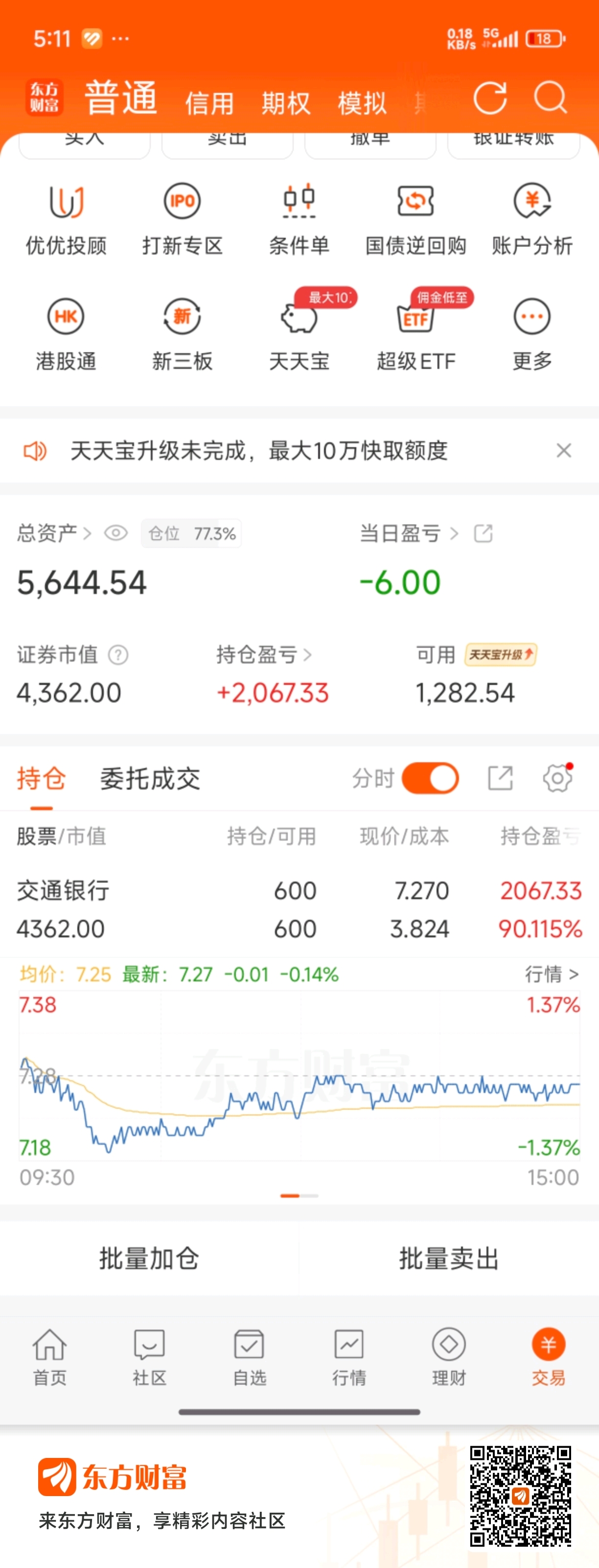 #炒股日记# 好久没打开这个账户了。交通银行90%利润——时间的力量。#股民日常#