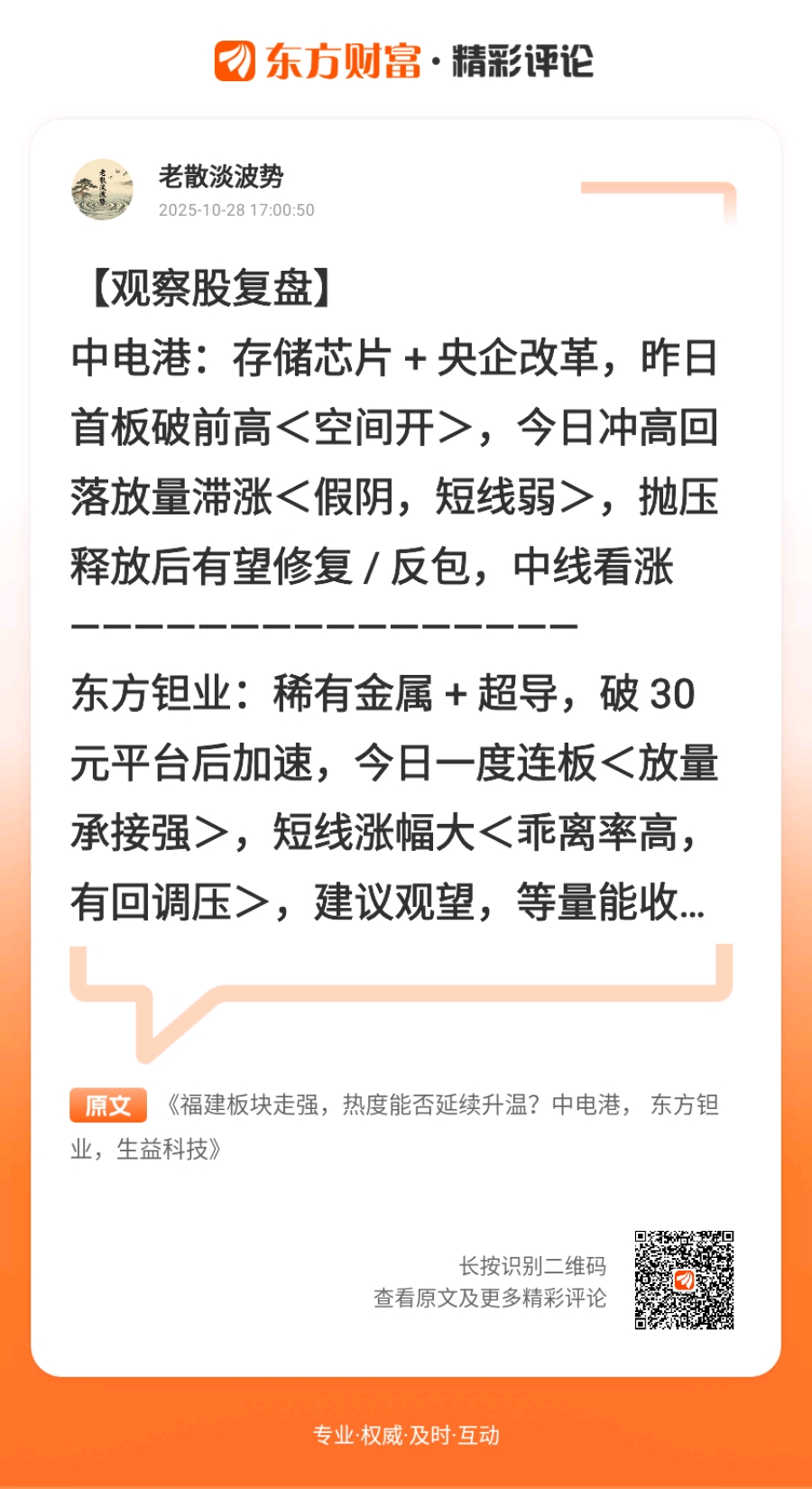 可看回早评 - 2025年1O月28日 OO:O3 — 链接 >>> CPO持续新高,泛TMT资金合力形成。中电港+东方钽业&生益科技