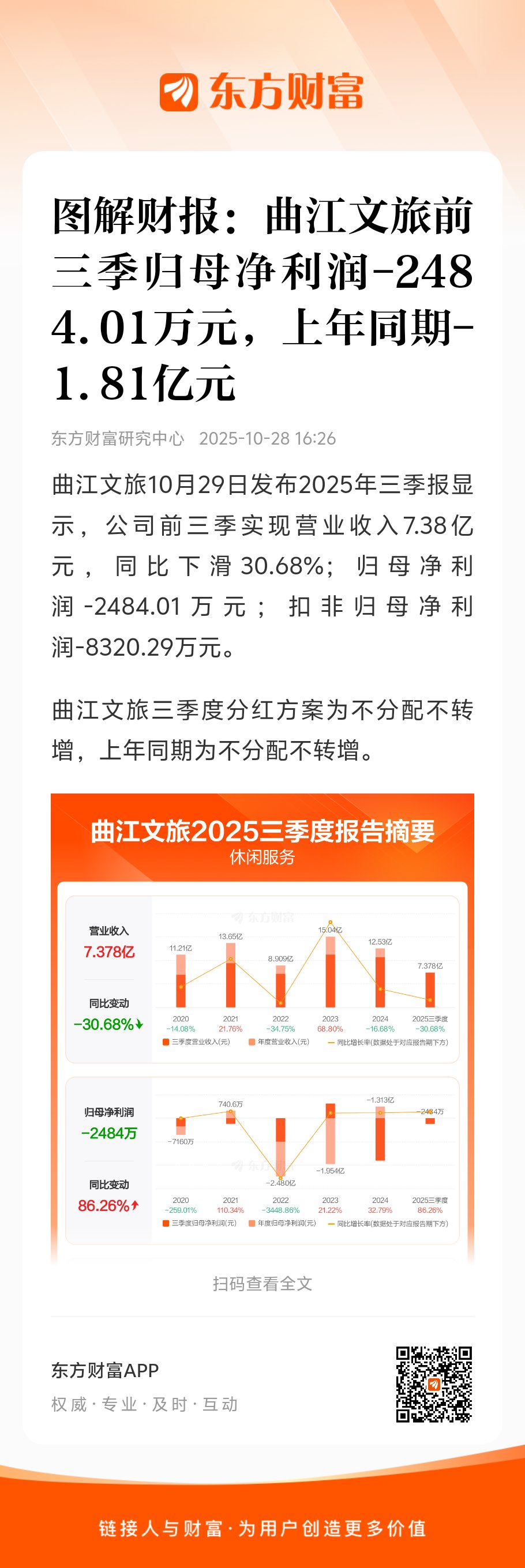 曲江文旅三季度分红方案为不分配不转增,上年同期为不分配不转增。