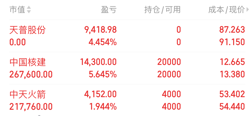 3.$中天火箭(SZ003009)$:横盘走了一天,不痛不痒,继续格局。