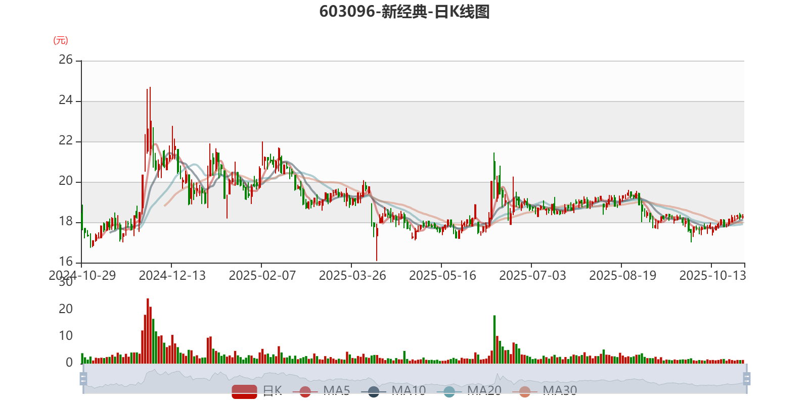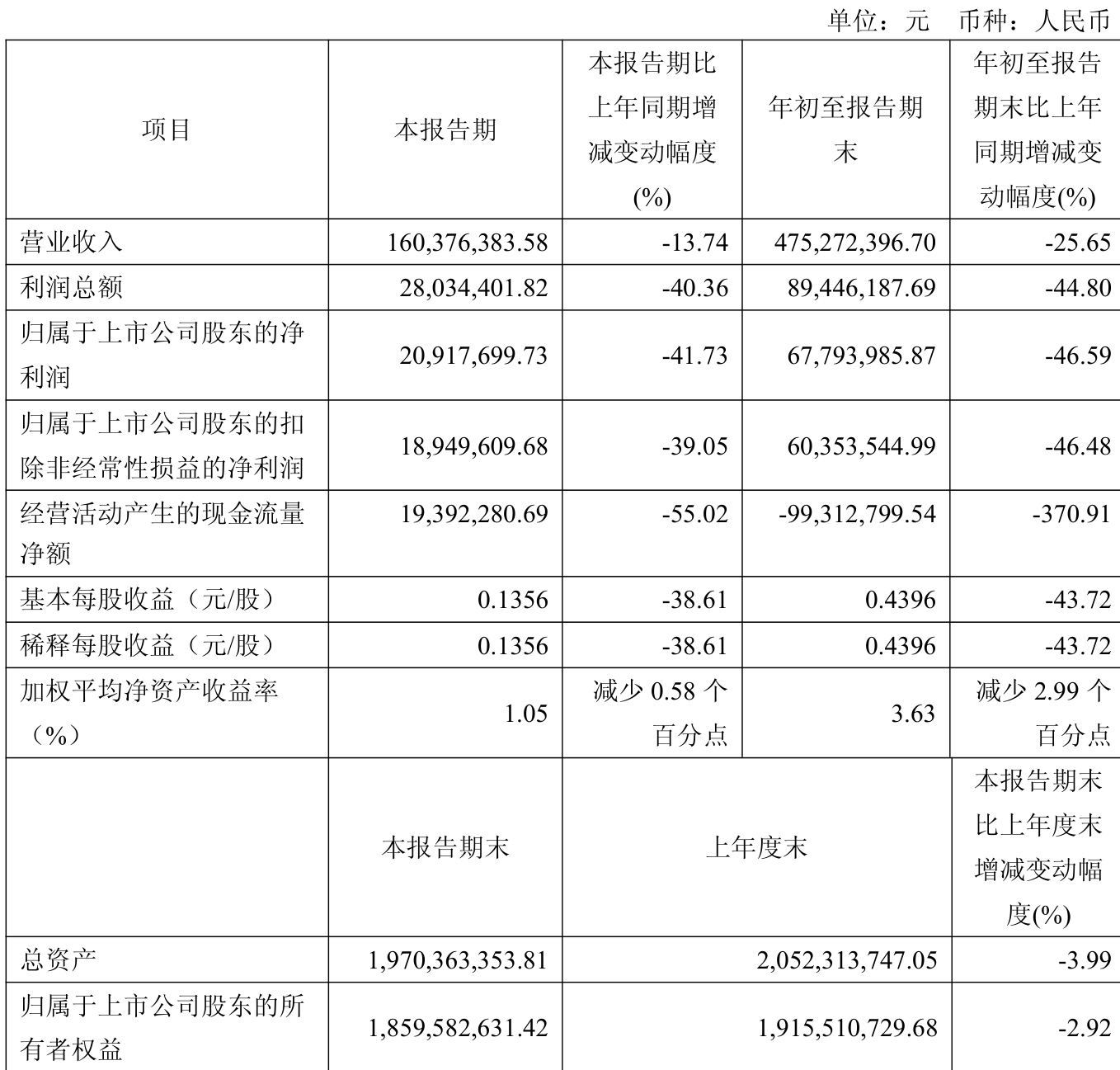 中证智能财讯新经典(603096)10月29日披露2025年第三季度报告。前三季度公司实现营业总收入4.75亿元,同比下降25.65%;归母净利润6779.4万元,同比下降46.59%;扣非净利润6035.35万元,同比下降46.48%;经营活动产生的现金流量净额为-9931.28万元,上年同期为3665.89万元;报告期内,新经典基本每股收益为0.4396元,加权平均净资产收益率为3.63%。