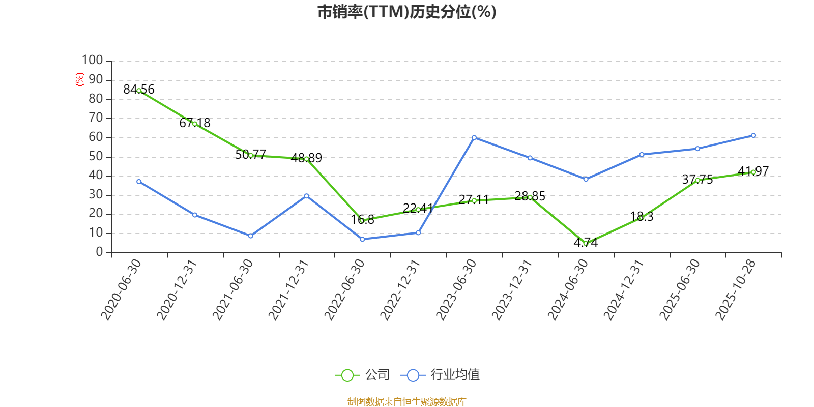以10月28日收盘价计算,新经典目前市盈率(TTM)约为41.74倍,市净率(LF)约1.51倍,市销率(TTM)约4.29倍。