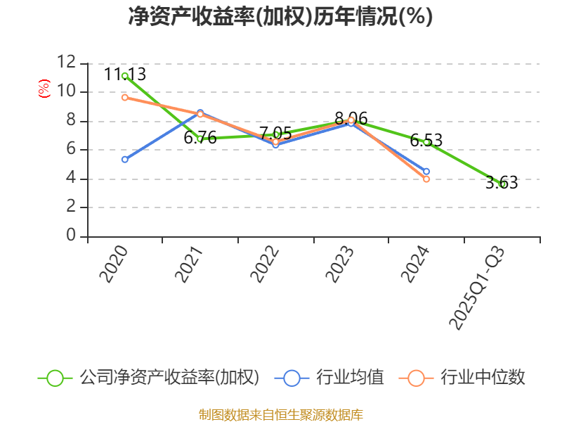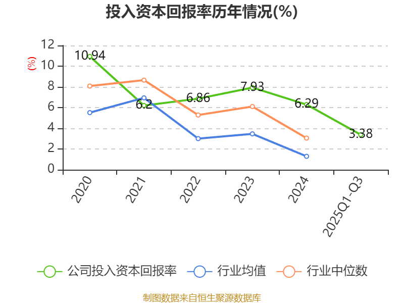 盈利能力方面, 2025年前三季度公司加权平均净资产收益率为3.63%,同比下降2.99个百分点。公司2025年前三季度投入资本回报率为3.38%,较上年同期下降2.97个百分点。