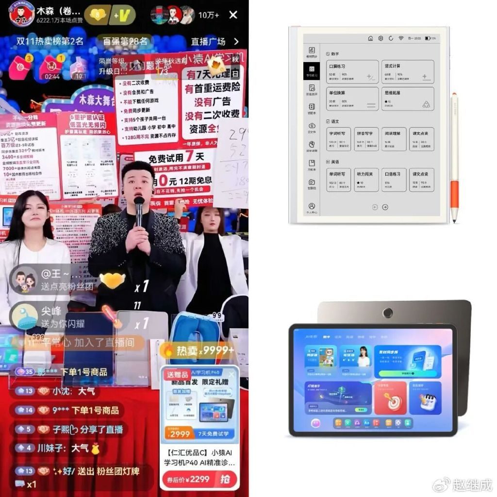 教育硬件行业的核心受众是“家长群体”,而家长的决策核心是“信任”。小猿精准洞察到这一点,通过联动抖音家庭教育赛道的高信任度达人,实现“专业背书-产品认知-销量爆发”的突破。最终,旗下两款热销爆品小猿学习机P40和小猿学练机实现直播GMV环比增长130%,成功登顶抖音电子教育榜第1名。这一成果证明,教育品牌的“对话”关键,是“找到目标人群信任的达人,用专业内容传递核心价值”。
