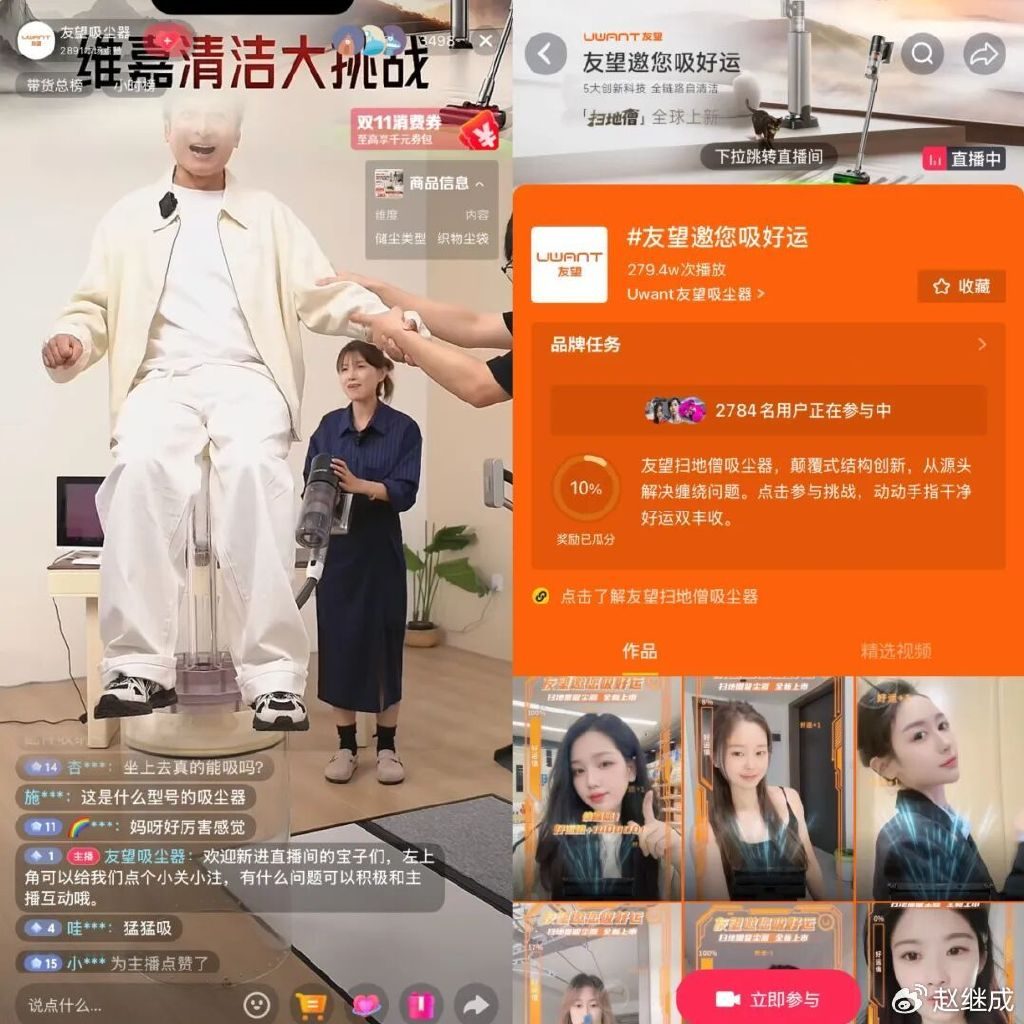 家电家居行业的用户决策则更理性,如何用“轻松有趣”的方式传递产品价值?UWANT友望给出了答案——邀请知名主持人李维嘉担任“洁净合伙人”,用“趣味挑战”激活用户兴趣。