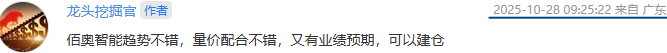 佰奥智能:从昨天的表现来看,虽然是不及预期的,整体为是一个窄幅震荡的表现,但下方的承接还是比较到位的。加上近期三季度报的披露情况来看,业绩大幅增长,这也会给后续的走势增加较大的想象空间,目前来看整个预期并没有走出来,继续格局。