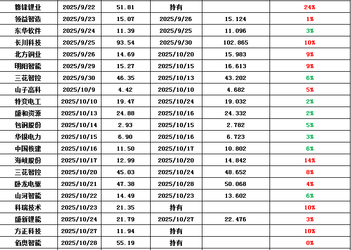 近期持仓记录