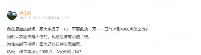 8月份我还发动态告诉群友不要频繁操作,万一A股一口冲上4000点了呢?
