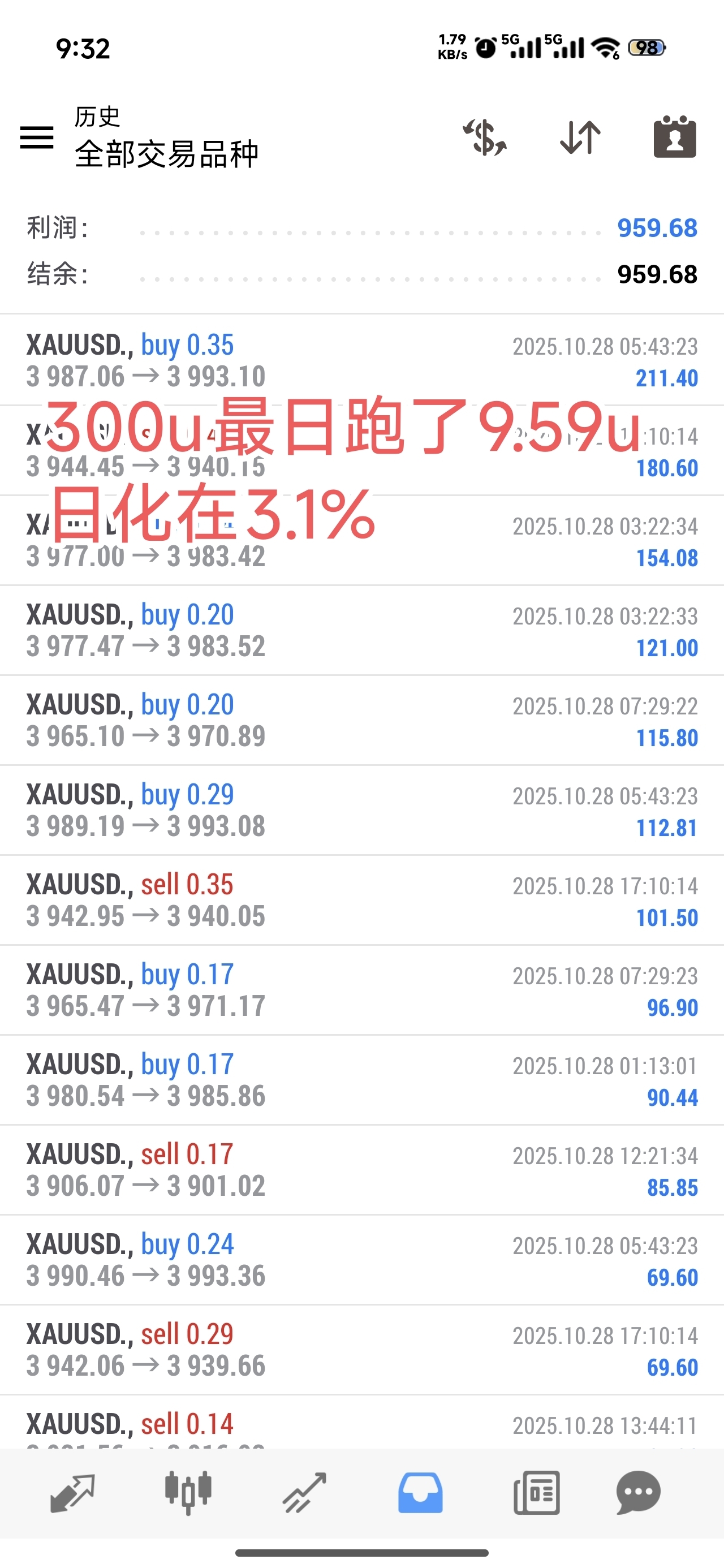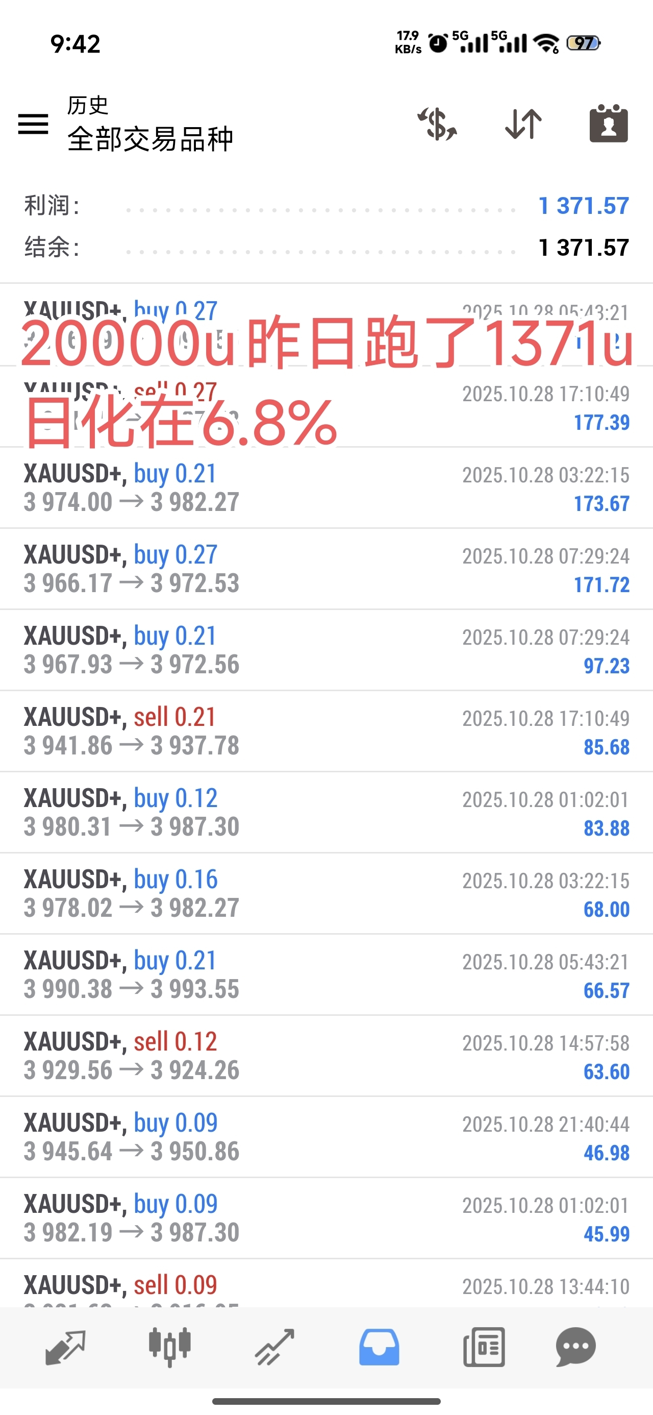 10.28号战绩分享20000u昨日跑了1371u,日化在6.8%300u昨日跑