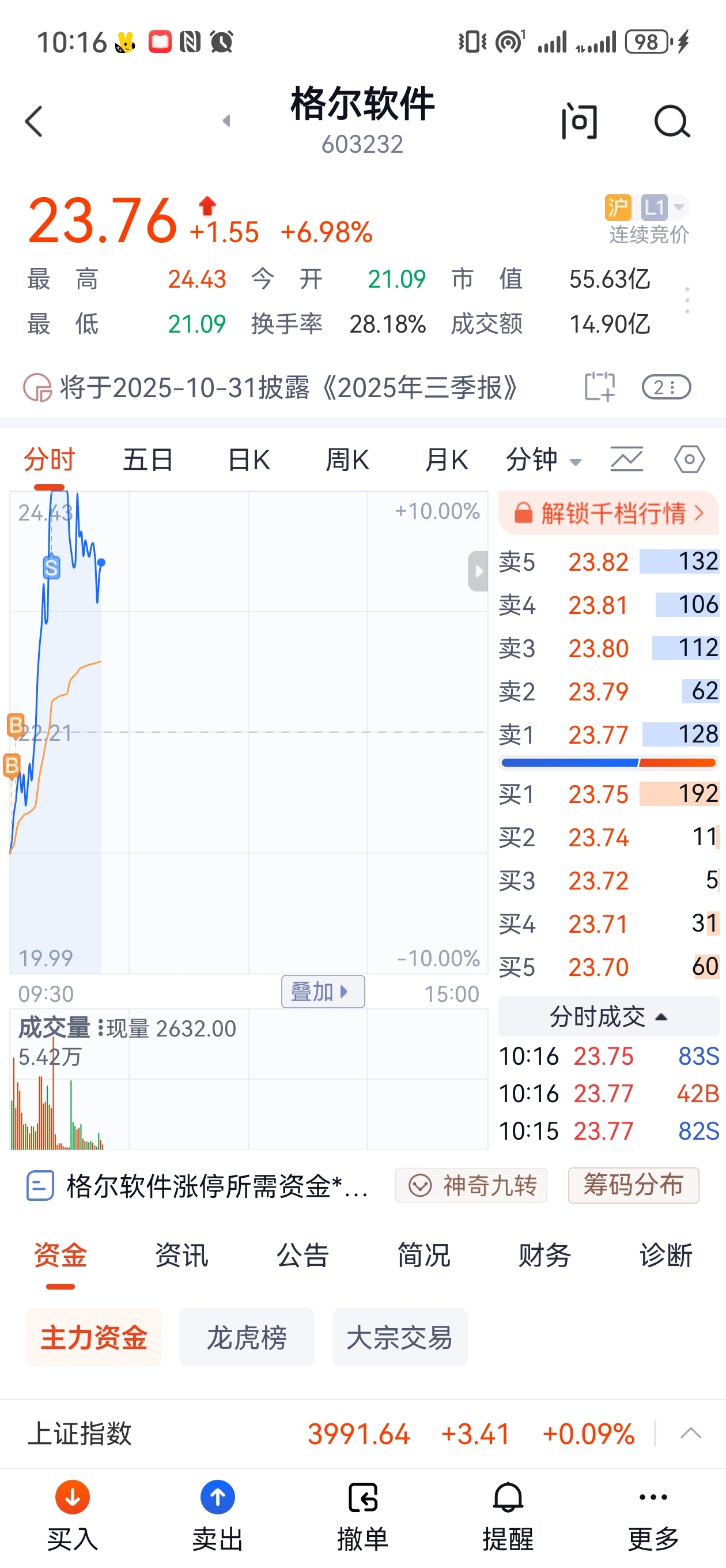 早盘看好岩山科技,昨天买入的基础上大幅加仓,今天非常不错,格尔软件早盘买入,板上