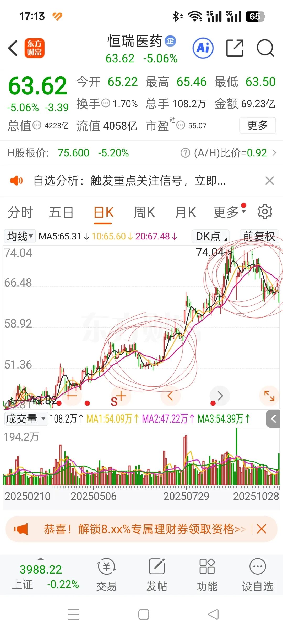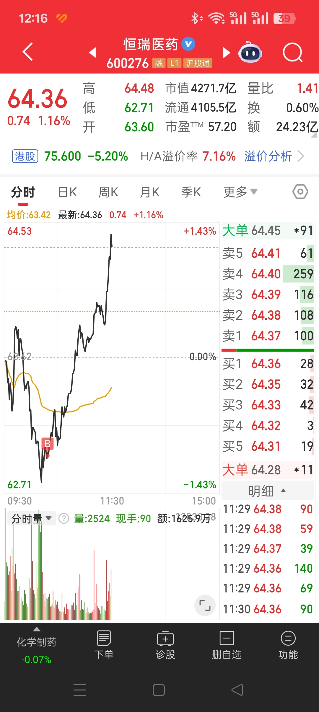 恒瑞医药午盘1029早盘说的恒瑞医药主力正在砸盘,今天上午,先探底,再拉升,完美