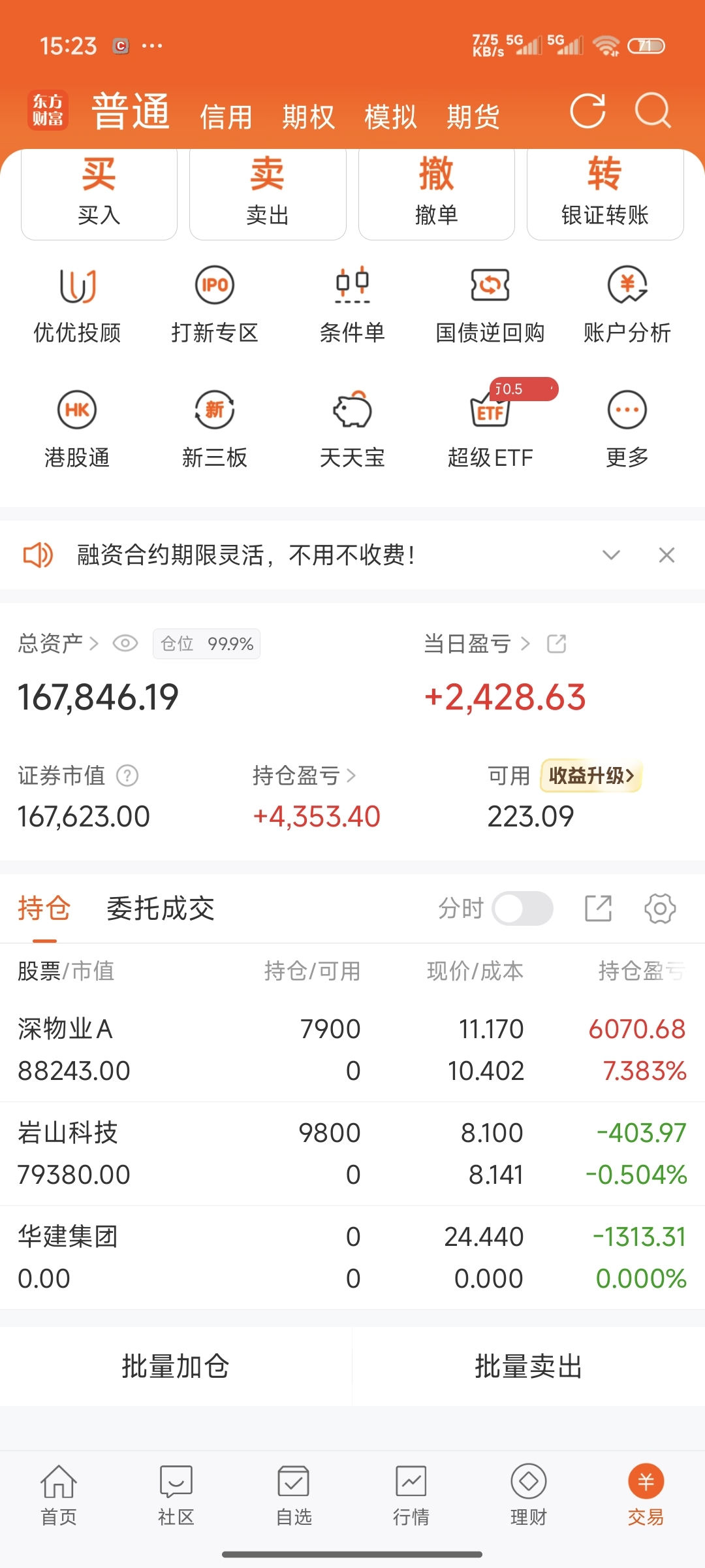 今天卖了华建,下降趋势的票我就不去博了,风险高于收益