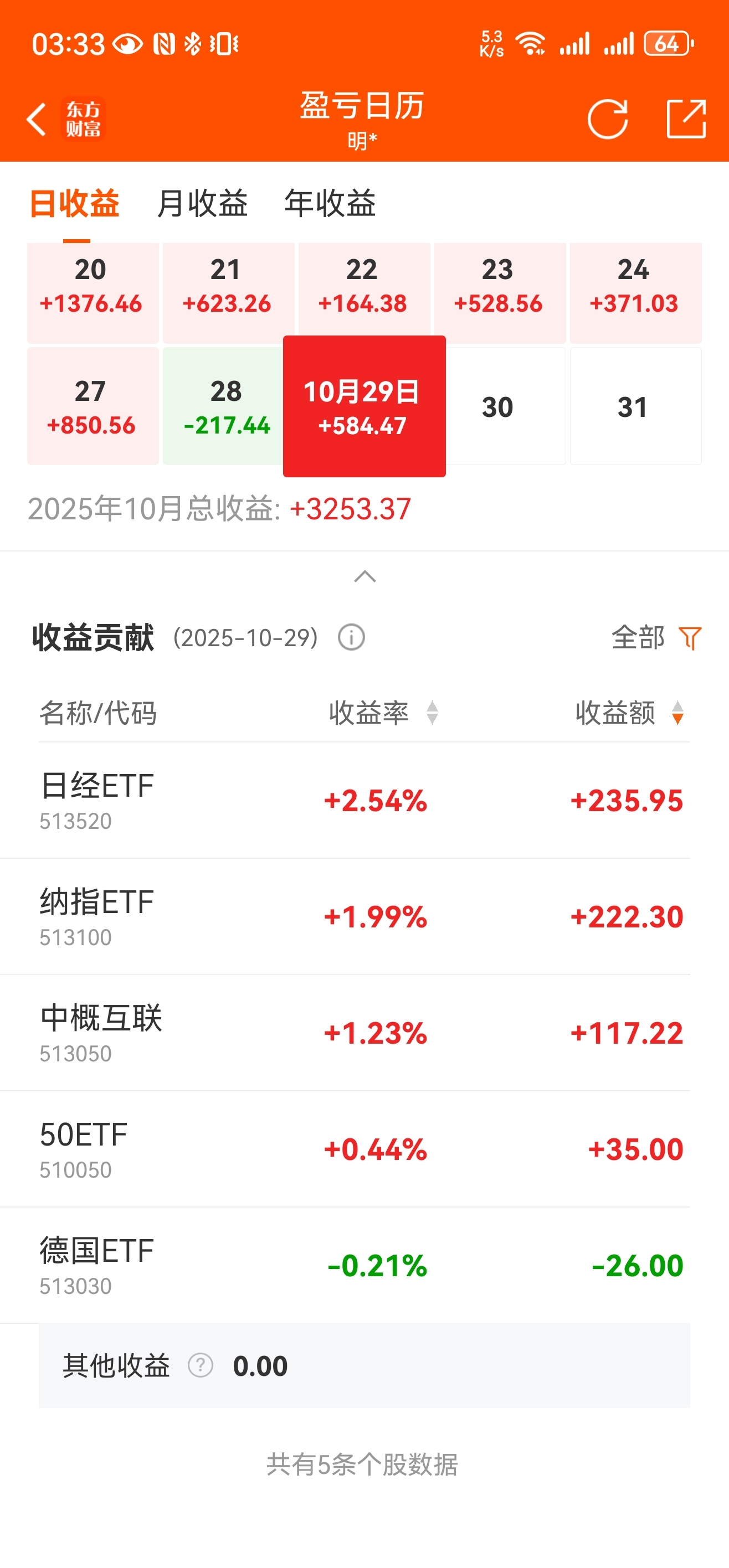 持续记录ETF定投直播第104天附上今作/持仓2025/10/29