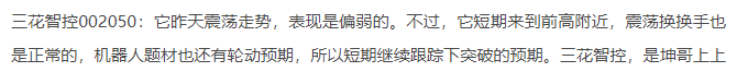 $三花智控(SZ002050)$:它今日震荡小幅冲高,状态没啥毛病,那就继续多些耐心吧,继续看它趋势表演。这种有地位的趋势谷,是要多些耐心的,而且都是轮动表现的。三花智控,是坤哥上上周五挖掘的,因为当时发现了它逆势抗跌的气质,当时位置非常好。结果可以看到,近期连续走强,非常强势啊,不负坤哥的挖掘。期间不贪减半过一次。