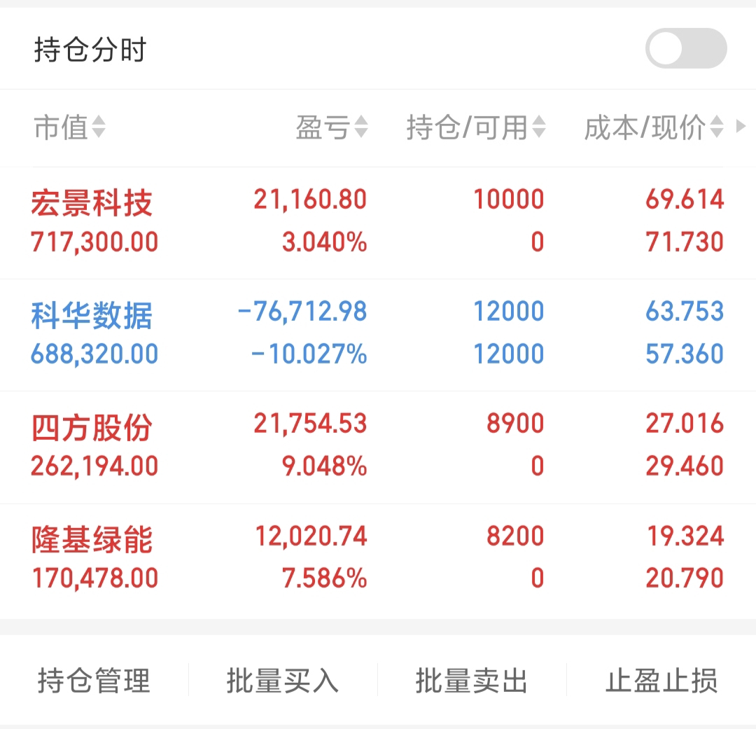 2. 科华数据暂浮亏10%,计划持仓至回本后离场。