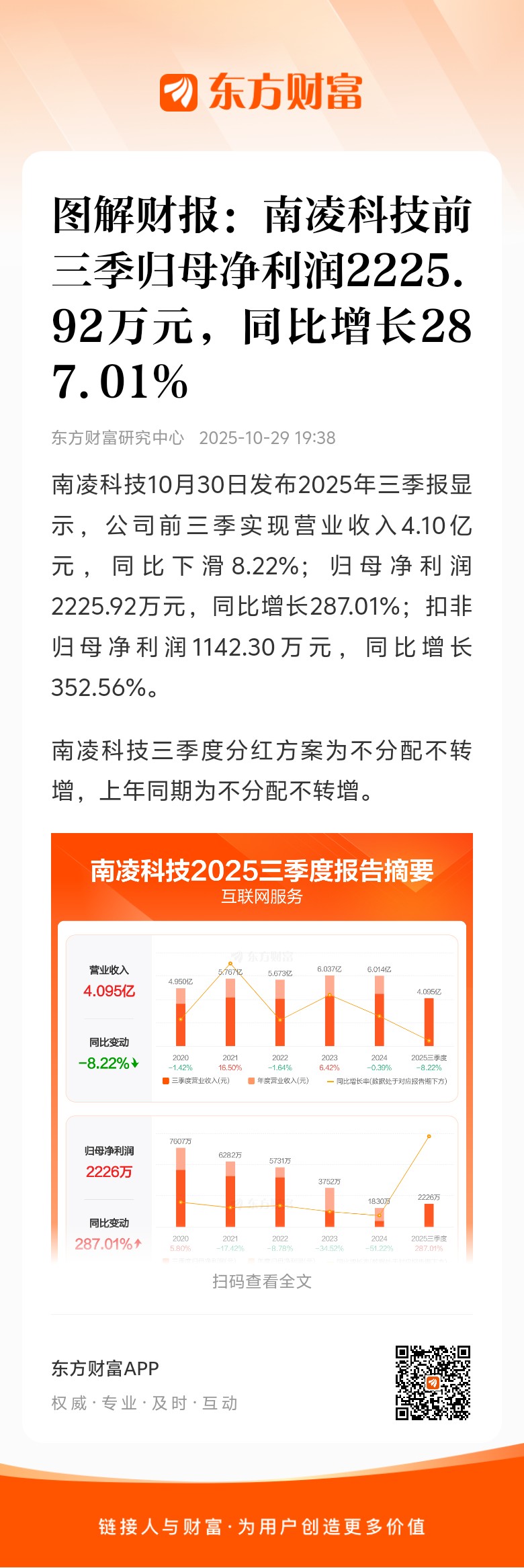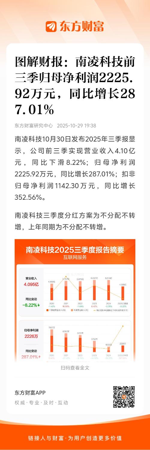 南凌科技三季度分红方案为不分配不转增,上年同期为不分配不转增。