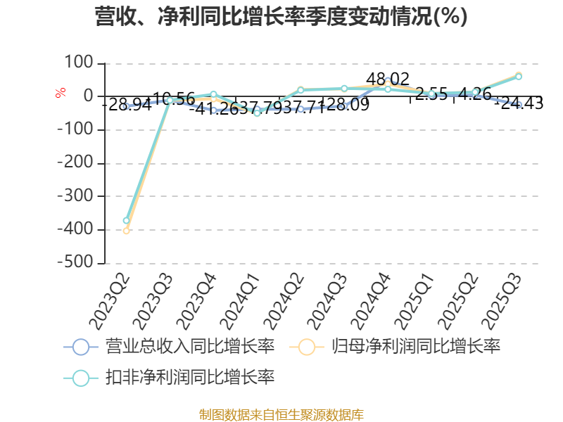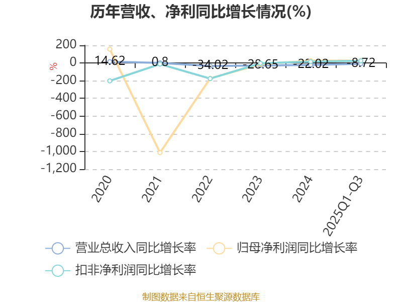 负债重大变化方面,截至2025年三季度末,公司长期借款较上年末增加235.57%,占公司总资产比重上升8.44个百分点;一年内到期的非流动负债较上年末减少89.05%,占公司总资产比重下降4.99个百分点;短期借款较上年末减少0.98%,占公司总资产比重下降0.62个百分点;应付票据及应付账款较上年末增加2.72%,占公司总资产比重上升0.22个百分点。