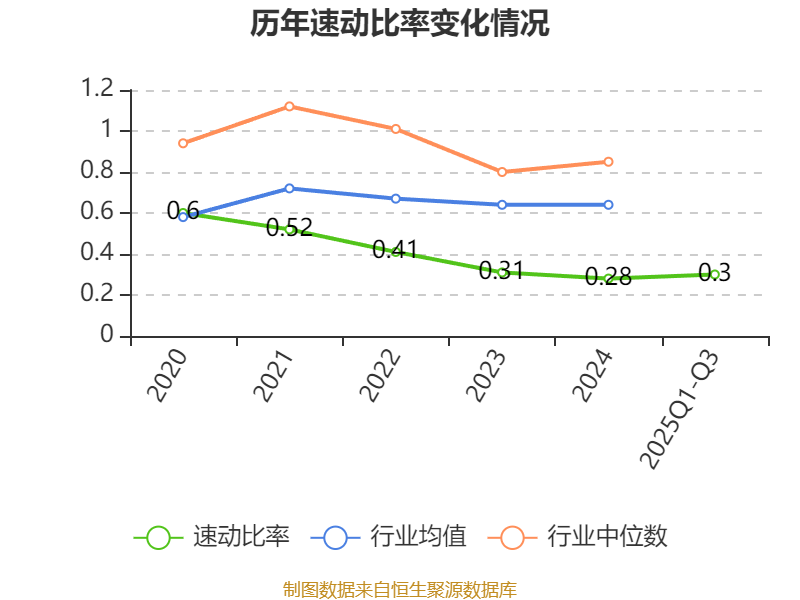 2025年前三季度,公司流动比率为0.57,速动比率为0.3。