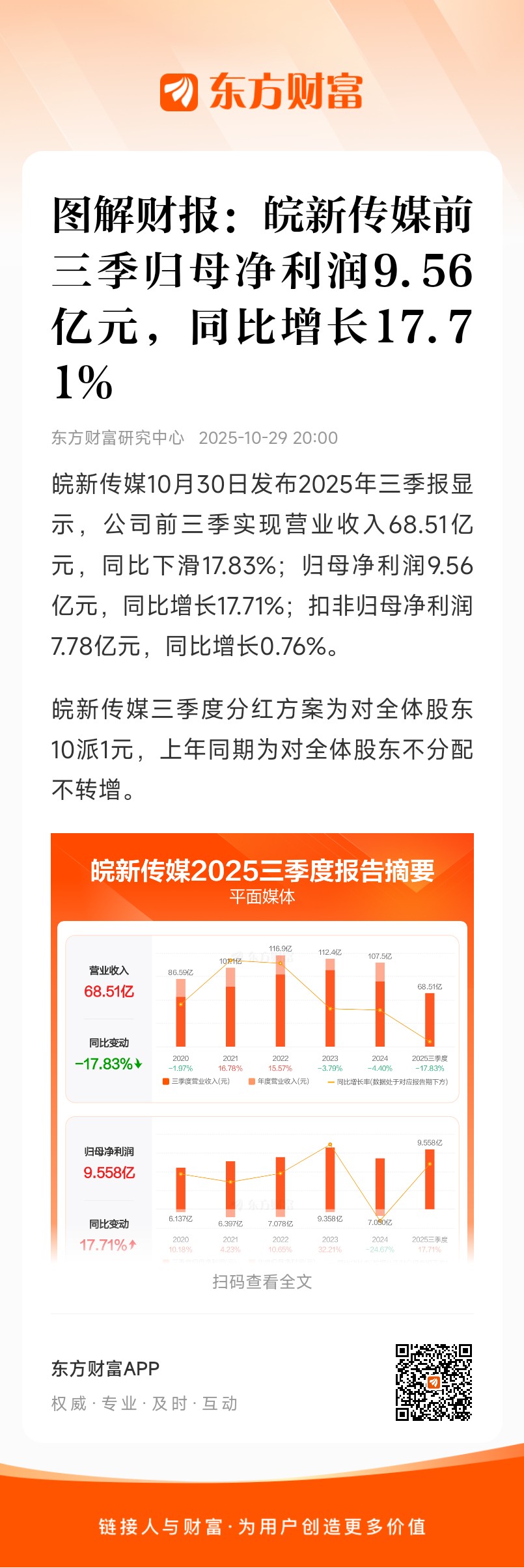皖新传媒三季度分红方案为对全体股东10派1元,上年同期为对全体股东不分配不转增。