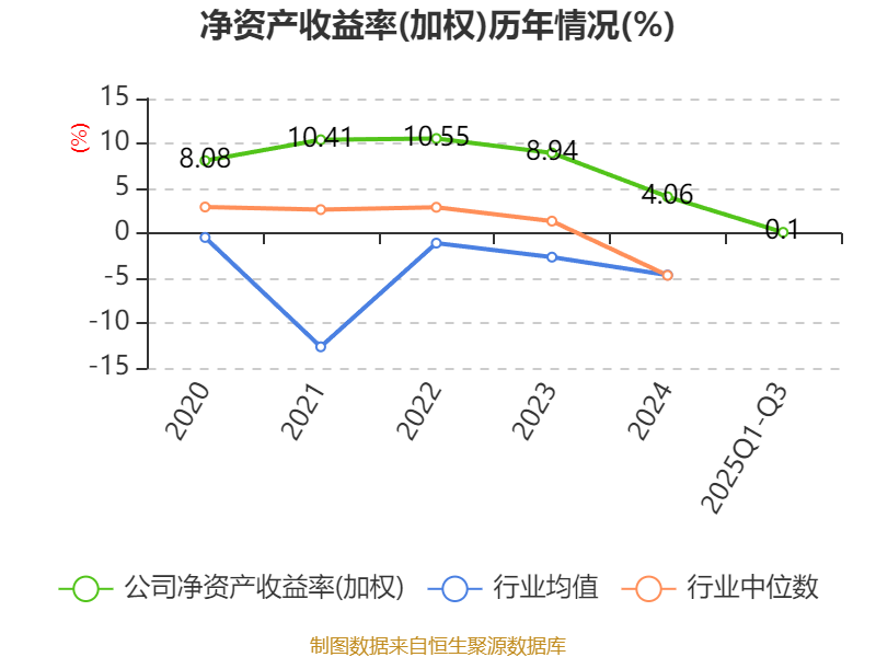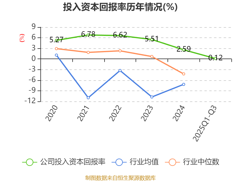 盈利能力方面, 2025年前三季度公司加权平均净资产收益率为0.1%,同比下降4.65个百分点。公司2025年前三季度投入资本回报率为0.12%,较上年同期下降2.78个百分点。