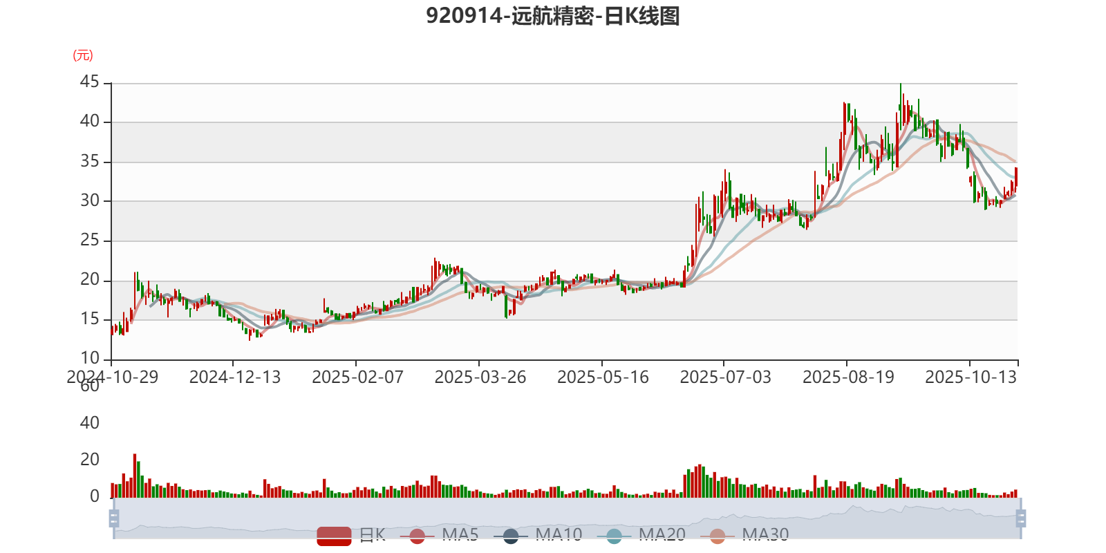 以10月29日收盘价计算,远航精密目前市盈率(TTM)约为51.57倍,市净率(LF)约3.58倍,市销率(TTM)约3.37倍。