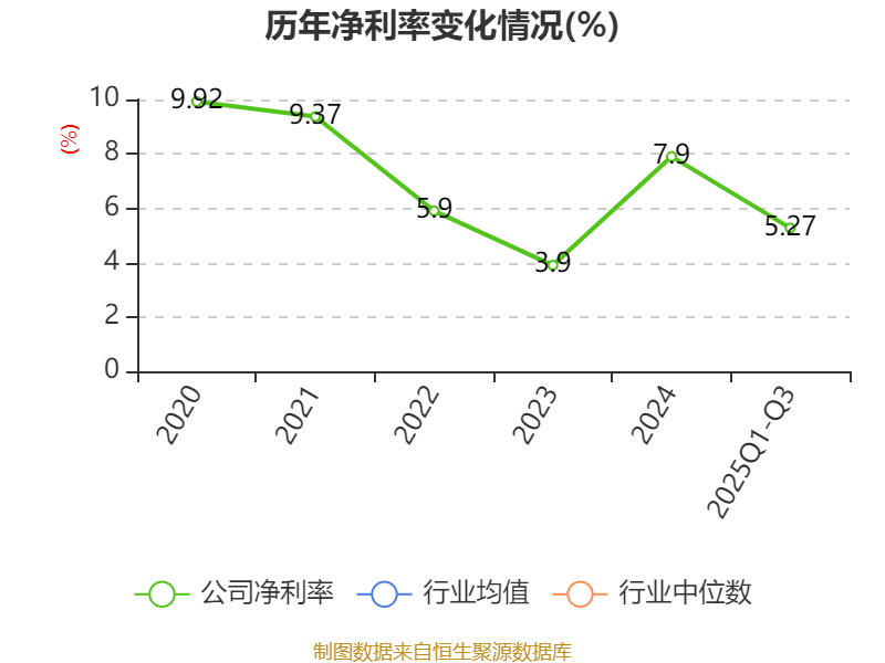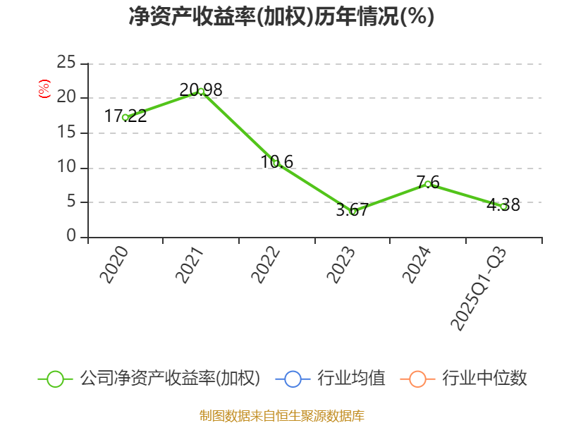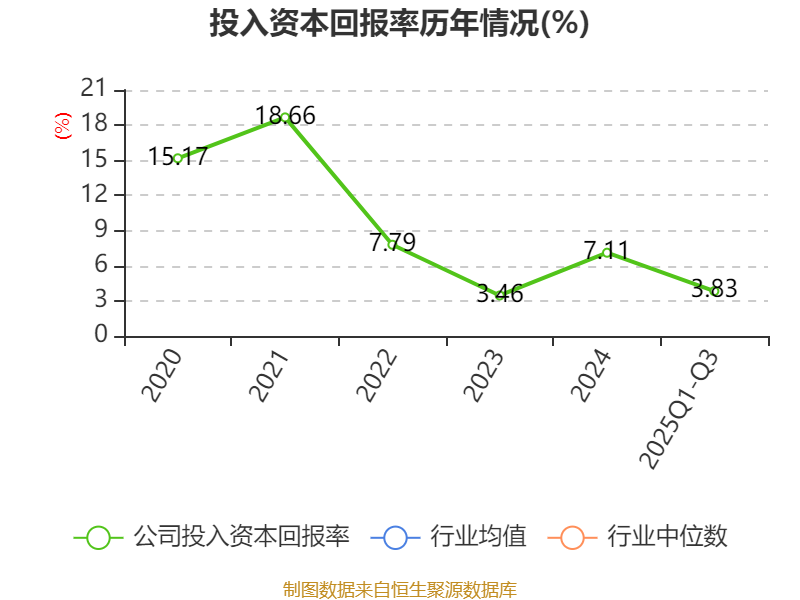 盈利能力方面, 2025年前三季度公司加权平均净资产收益率为4.38%,同比下降0.41个百分点。公司2025年前三季度投入资本回报率为3.83%,较上年同期下降0.75个百分点。