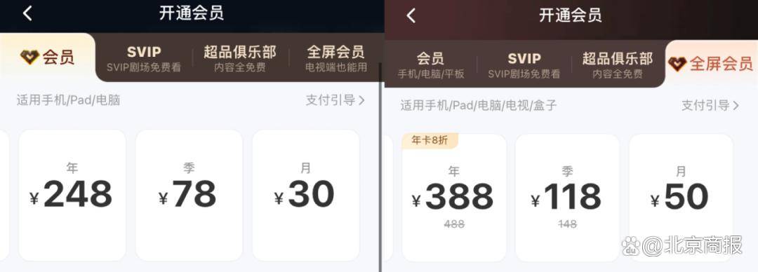 据悉,开通芒果TV会员,适用于手机/Pad/电脑会员包年248元、包季78元、包月30元;开通芒果TV全屏会员,适用于手机/Pad/电脑/电视/盒子会员包年388元(原价488元)、包季118元(原价148元)、包月50元。