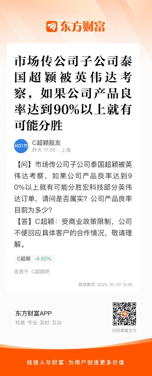 市场传公司子公司泰国超颖被英伟达考察,如果公司产品良率达到90%以上就有可能分胜宏科技部分英伟达订单,请问是否属实?公司产品良率目前为多少?