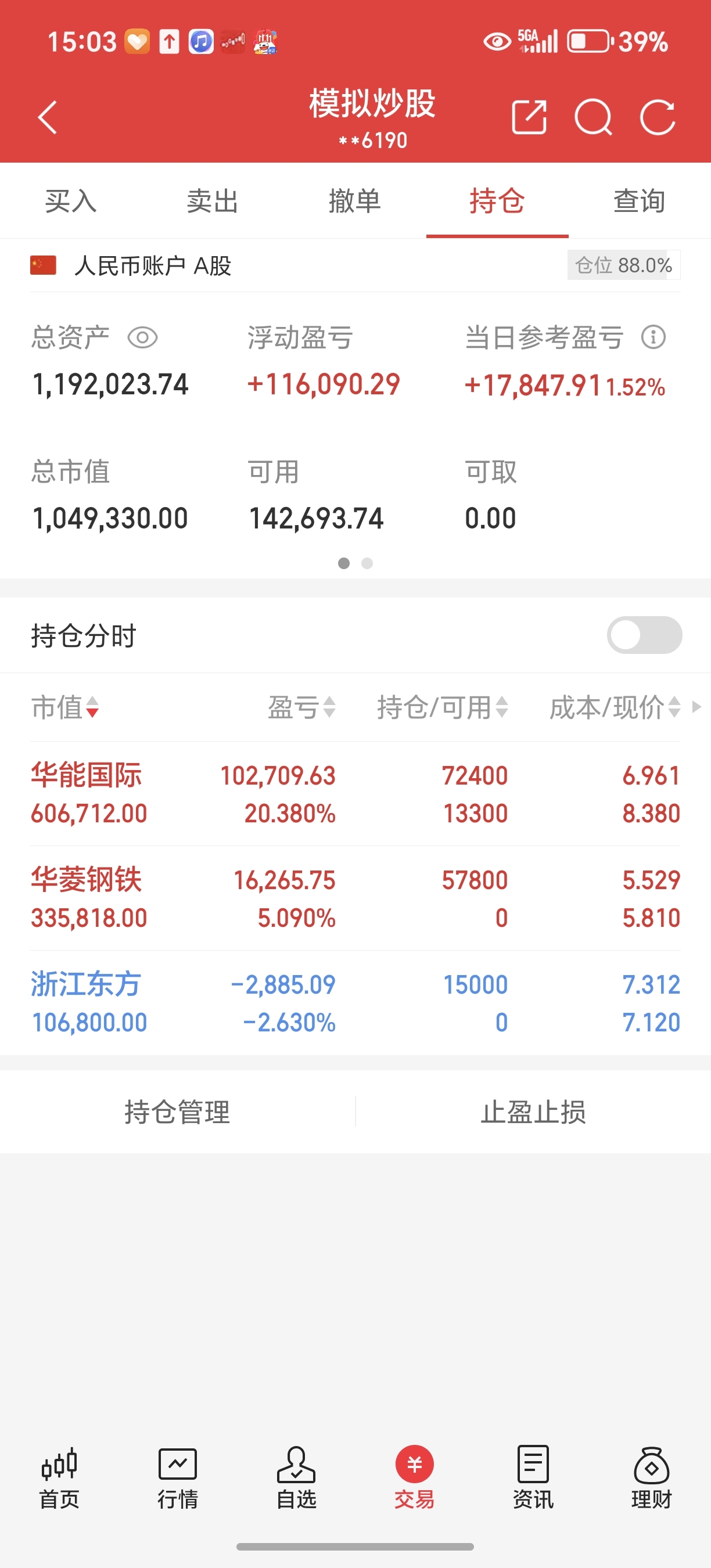 预想明天操作:华能国际(冲高下跌,探底回升。华菱钢铁(冲高下跌,探底回升)。浙江