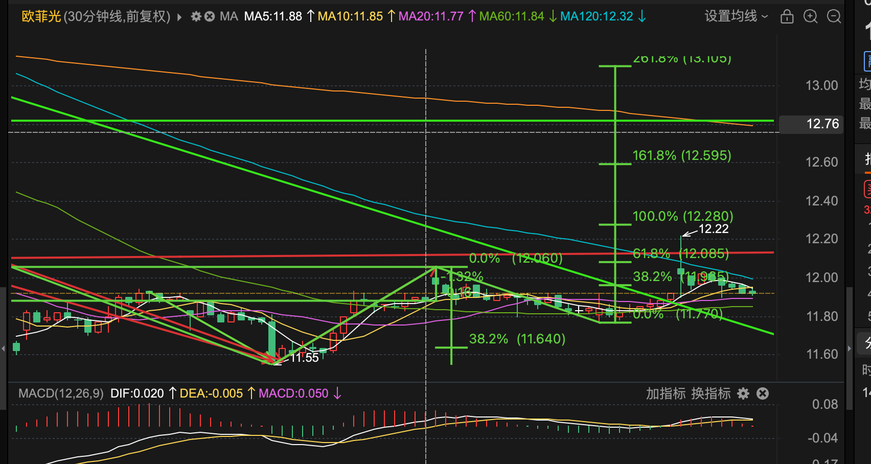 尾盘分享 只要不跌破11.77还能向上打一下 还是只是横盘震荡 这里走到哪里去都没有意义 等待时间吧 会高抛低吸就做一做 不会的躺平就行了