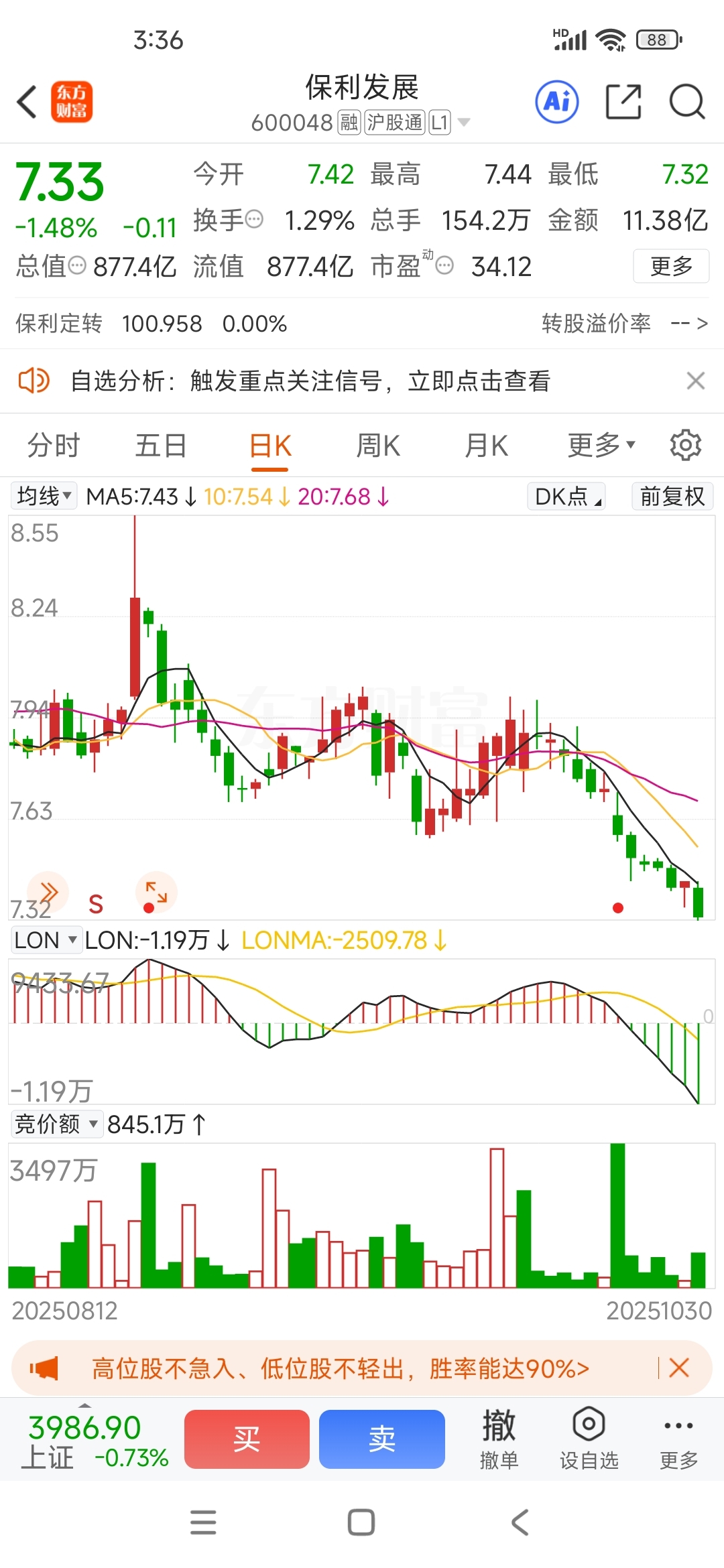 这就是保利发展的走势图,一路下跌,套股民无数,超级垃圾股,股民的血汗钱就是这样没