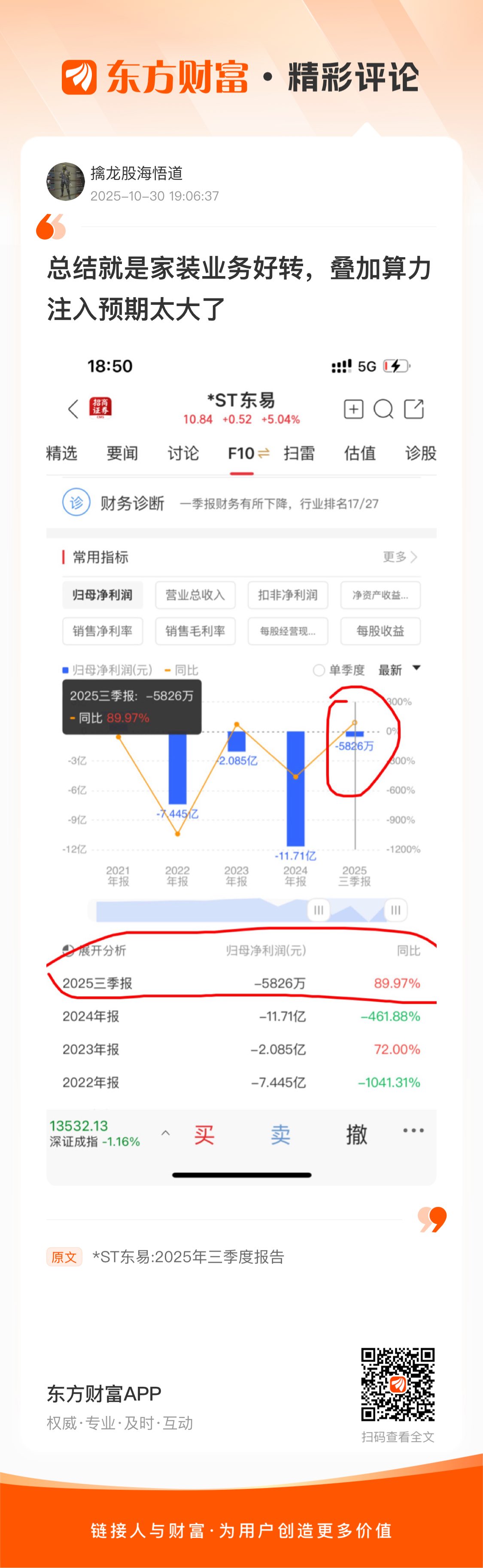 总结就是家装业务好转,叠加算力注入预期太大了我在《*ST东易:2025年三季度报