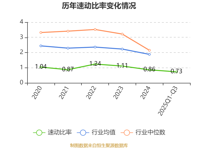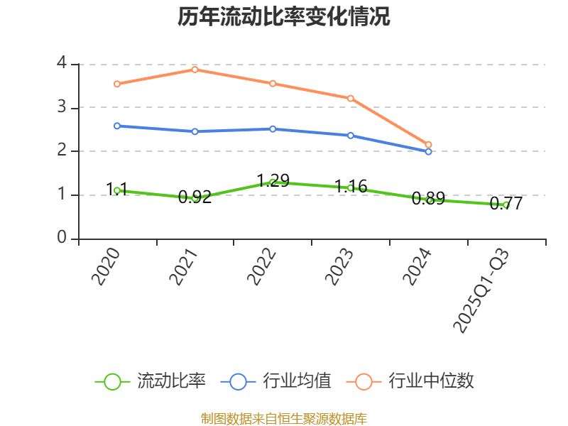 2025年前三季度,公司流动比率为0.77,速动比率为0.73。