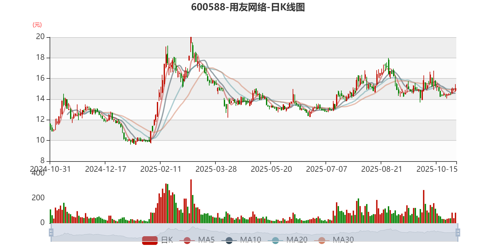 三季报显示,2025年三季度末的公司十大流通股东中,持股最多的为北京用友科技有限公司,占比26.958%。在具体持股比例上,万家行业优选混合型证券投资基金(LOF)持股有所上升,香港中央结算有限公司、华泰柏瑞沪深300交易型开放式指数证券投资基金持股有所下降。