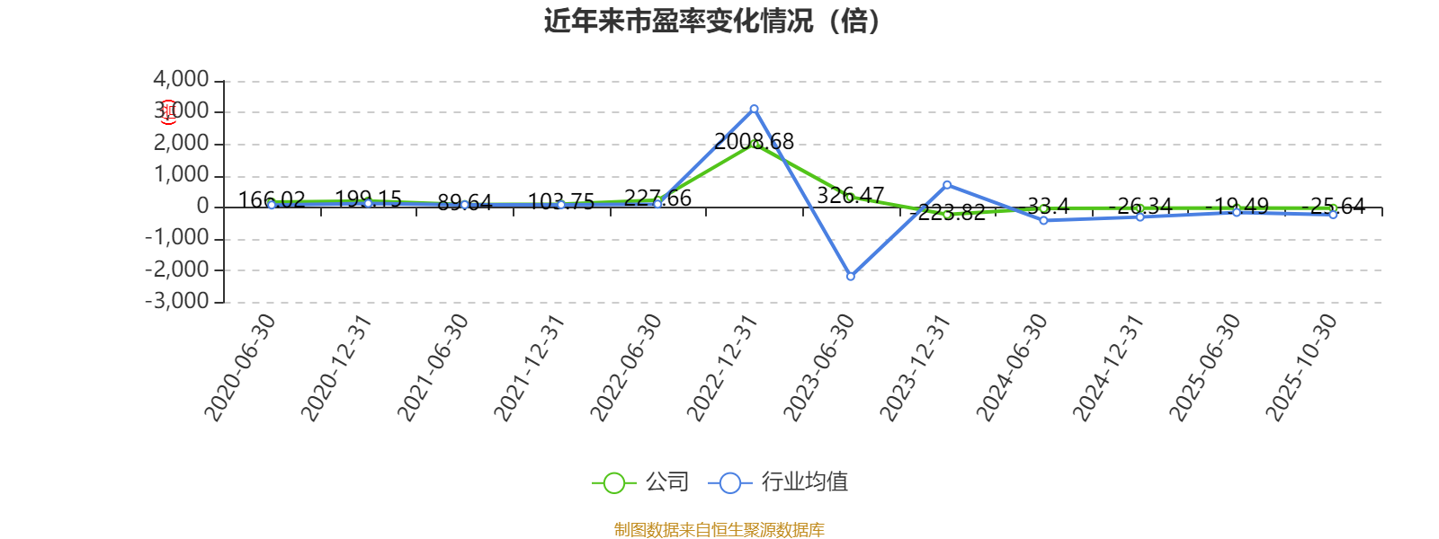 市盈率、市净率为负时,不显示当期分位数,会导致折线图中断。