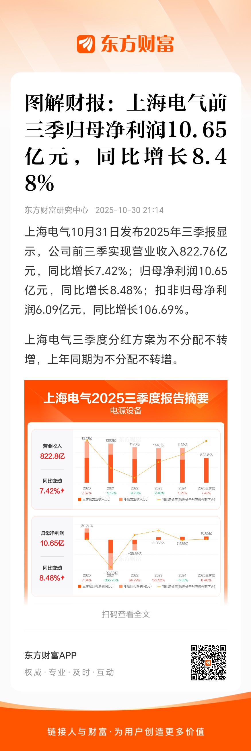 上海电气三季度分红方案为不分配不转增,上年同期为不分配不转增。