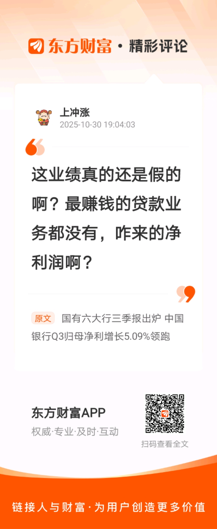 //@上冲涨 :这业绩真的还是假的啊?最赚钱的贷款业务都没有,咋来的净利润啊?
