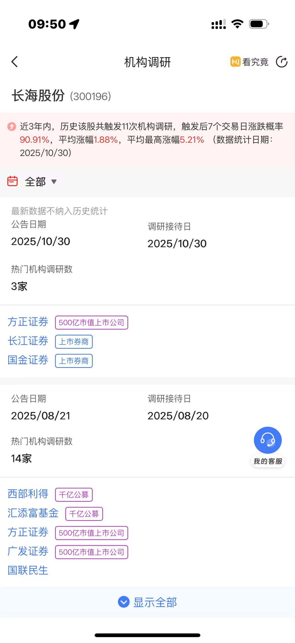 长海股份昨日接受方正证券、长江证券等机构调研,这票历史接受过多次调研,每次调研后