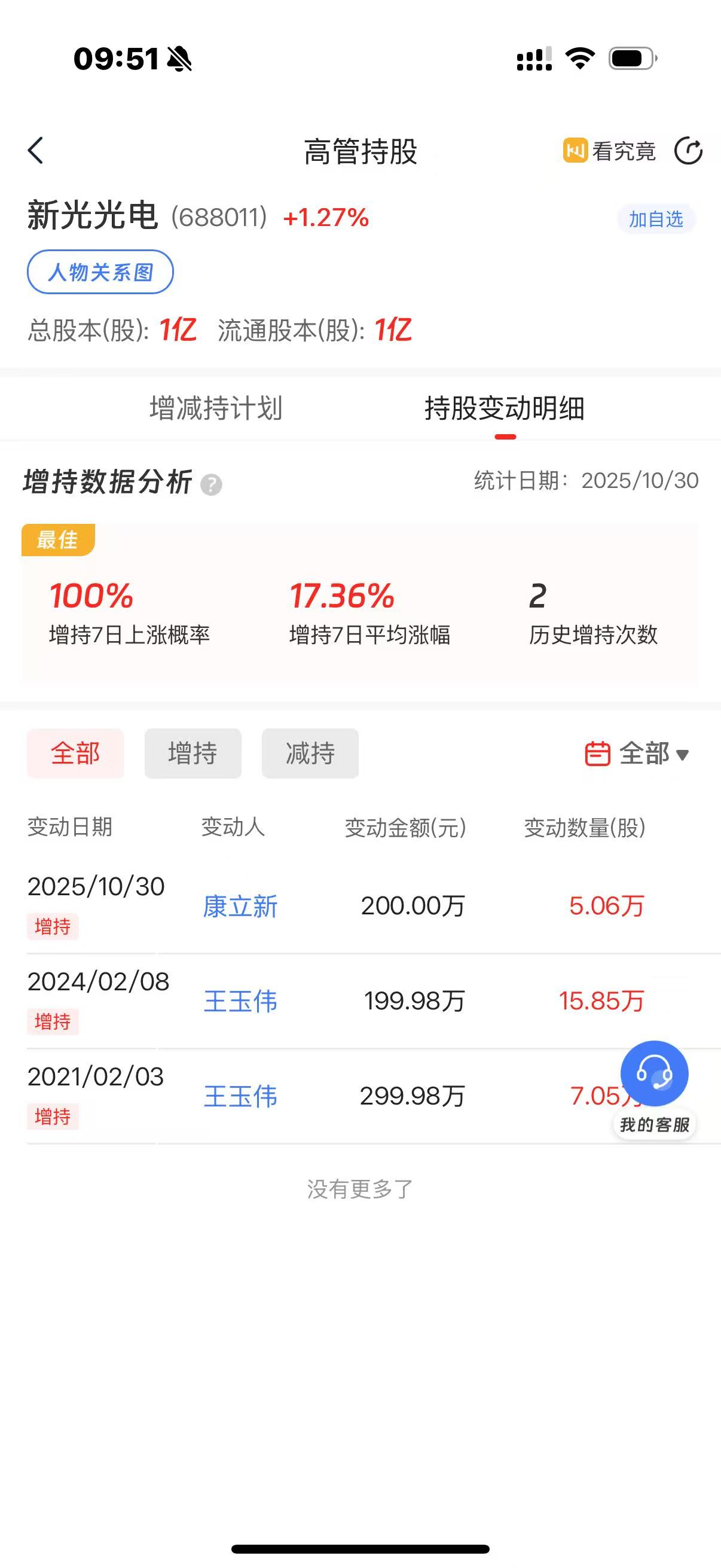 新光光电发生高管持股变动,高管康立新增持了5万股,这票有高管进行增减持的行为并不