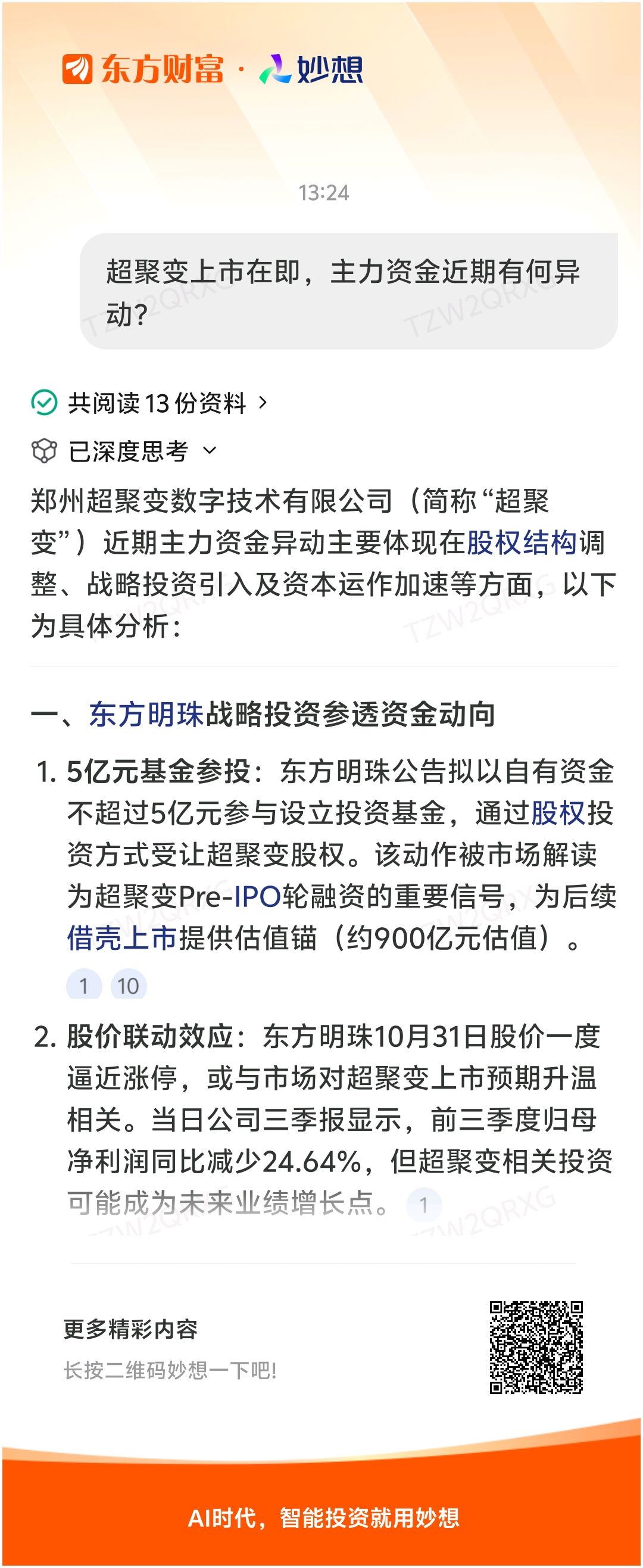 #@妙想,你怎么看?# 妙想一下:超聚变上市在即,主力资金近期有何异动?