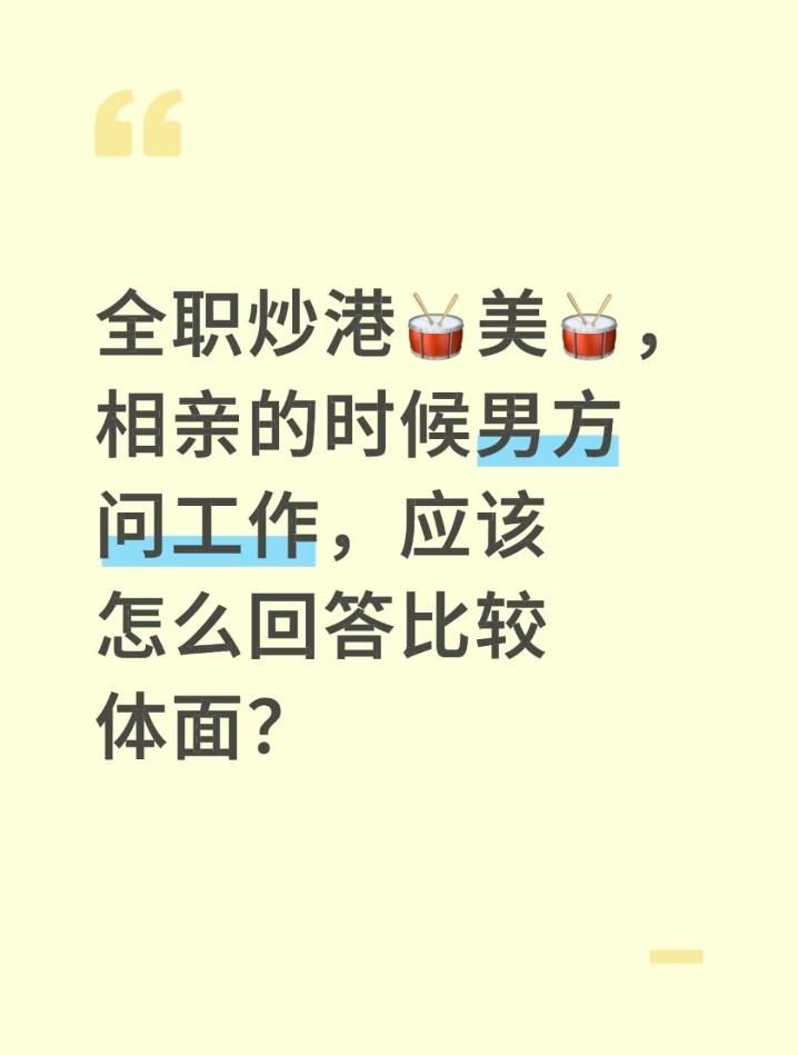 全职炒港美,相亲的时候男方问工作,应该怎么回答比较体面?